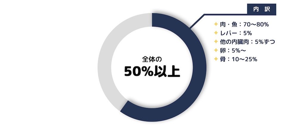 肉や魚、卵、内臓肉、野菜だけできちんとカロリーを与えるようにしましょう。