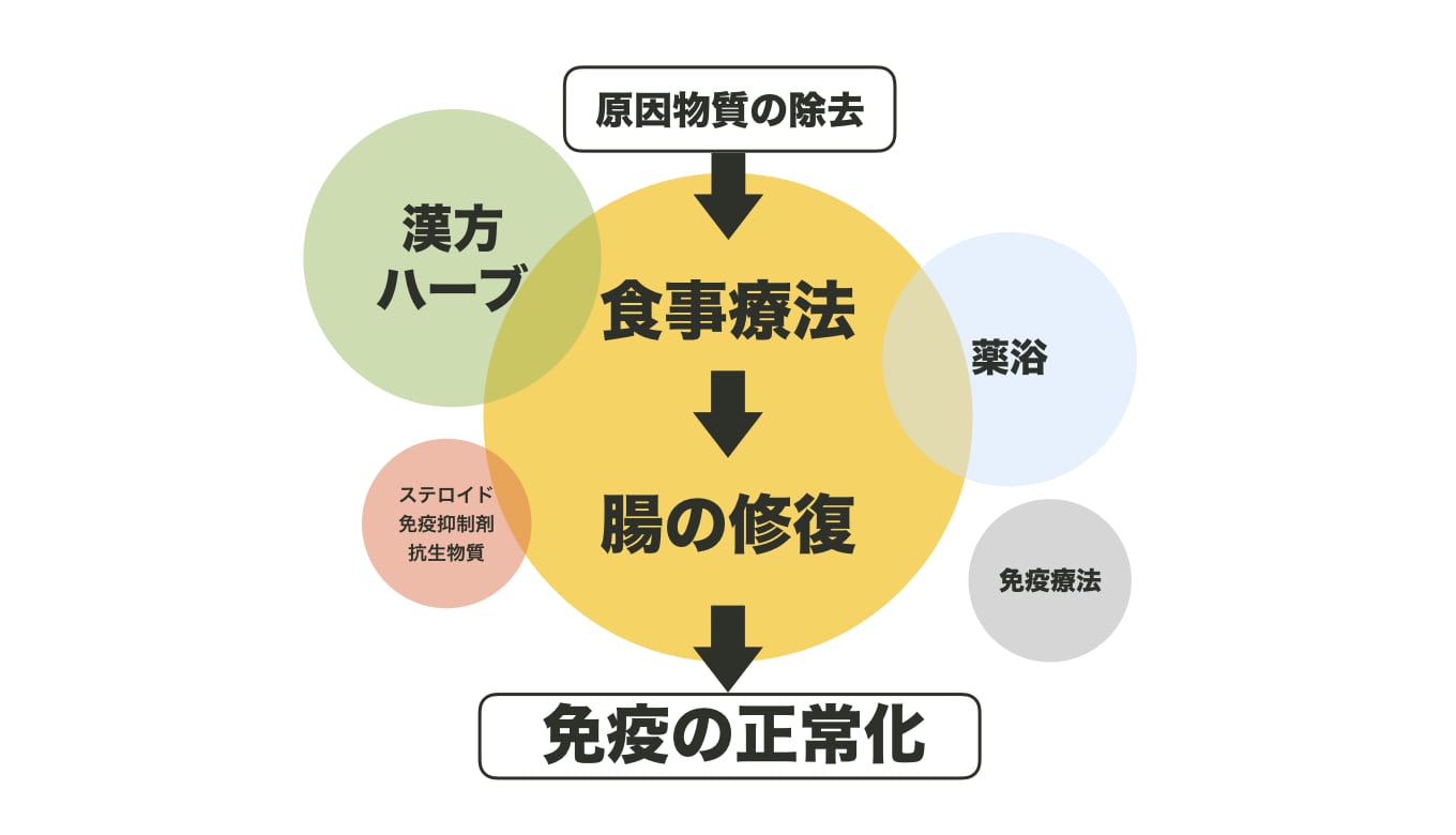 免疫系全体の70〜80%を担う腸を正常化して再発の防止に役立てましょう。